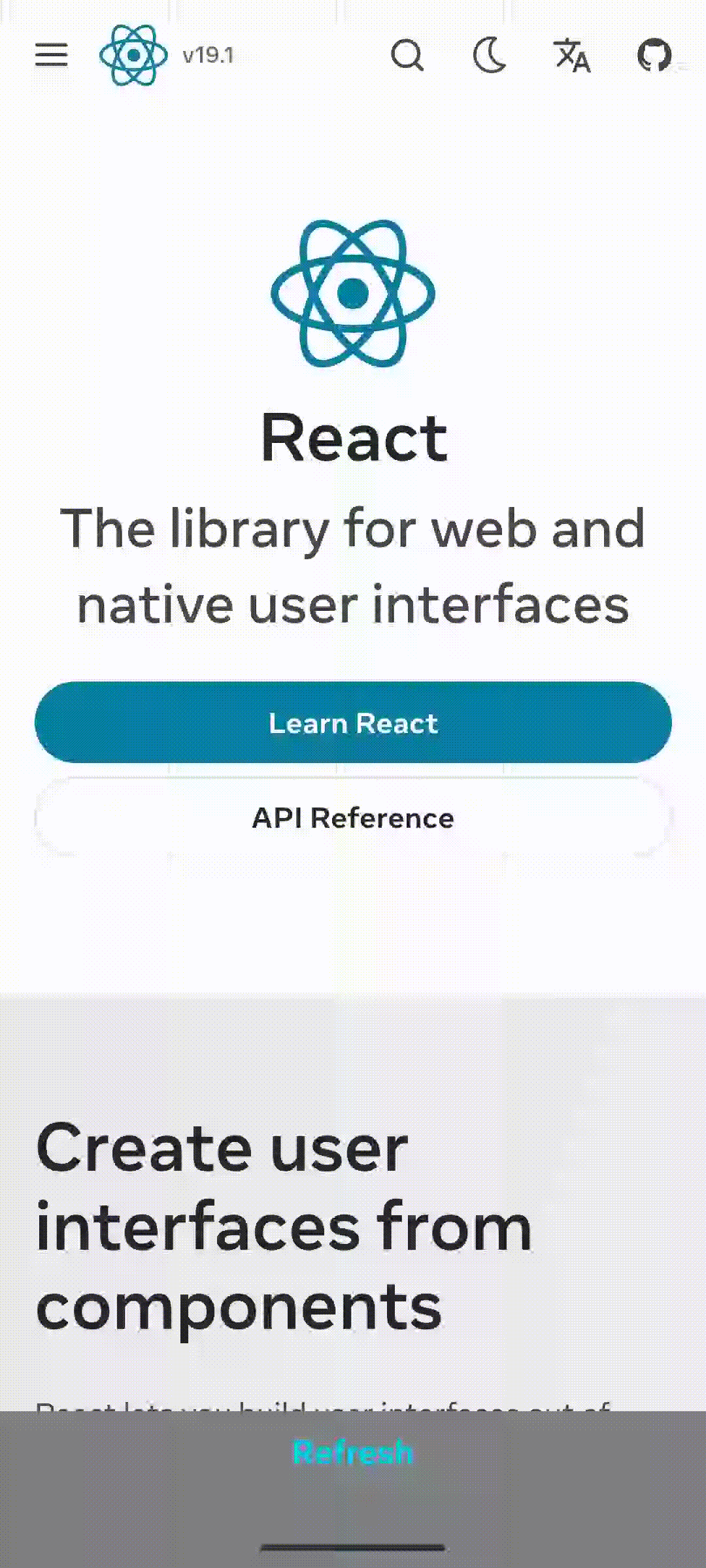 Finally, you can run your app with the usual commands. Once the app is running, you can tap on the refresh button to see the page getting reloaded.